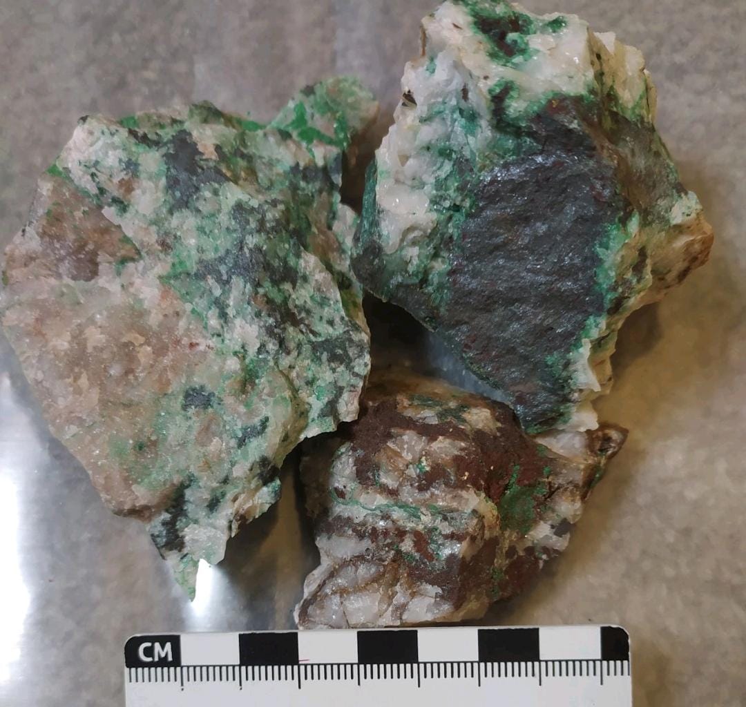 - Presence of copper-rich mineral indices along lithological contacts and major faults.