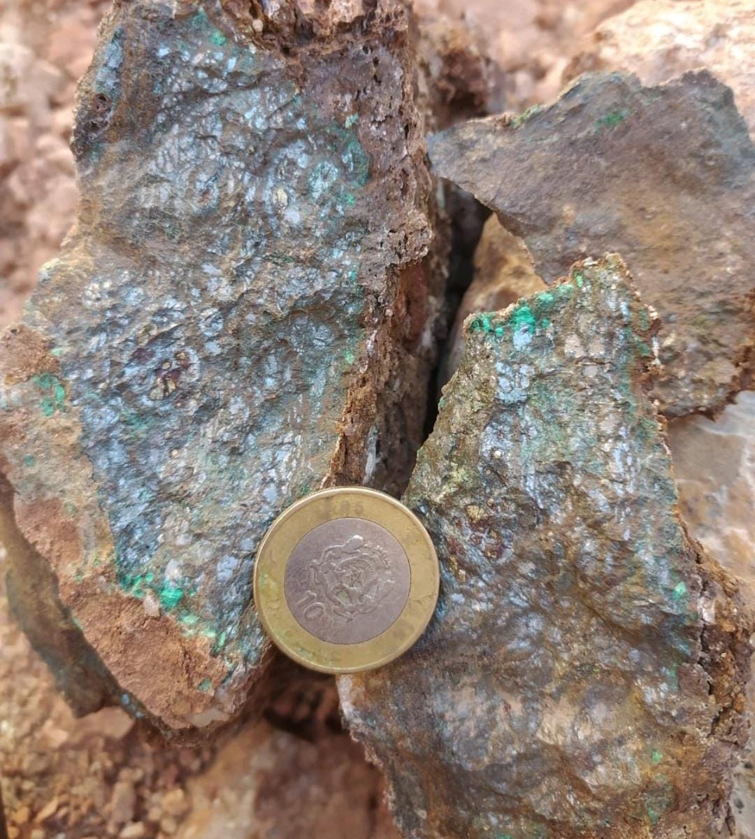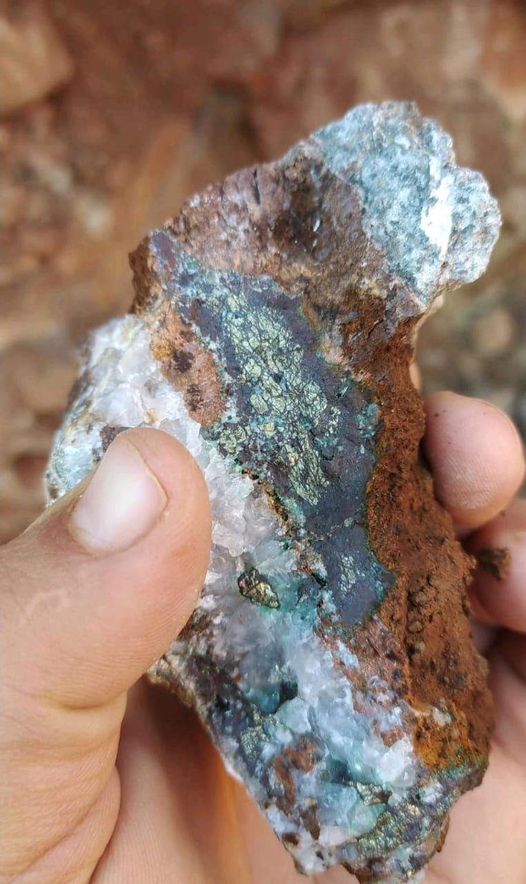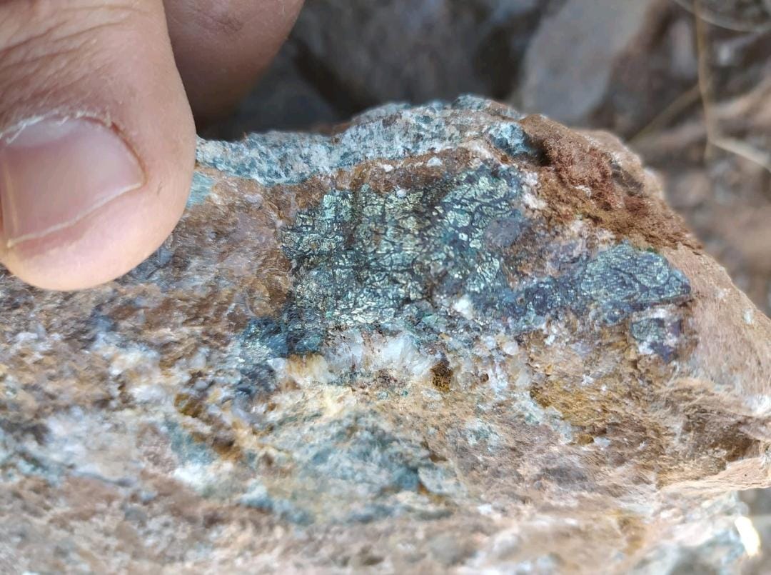 - Presence of copper-rich mineral indices along lithological contacts and major faults.